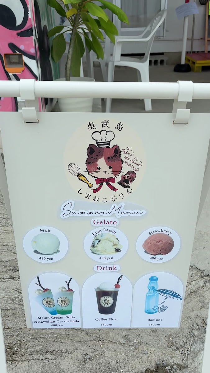 GELATOPUDDINGCAFE奥武島しまねこぷりん sits quietly on the small island of Ou in Nanjo, Okinawa, offering a laid-back café experience that blends simple Okinawan flavors with a unique local charm. Specializing in pudding and gelato, this spot stands out with its focus on fresh, local ingredients like Okinawan milk, eggs, and sugar cane, reflected in their signature 南の島の生プリン (South Island Fresh Pudding) and the bright, citrusy シークワーサーフロート (Shikuwasa Float).