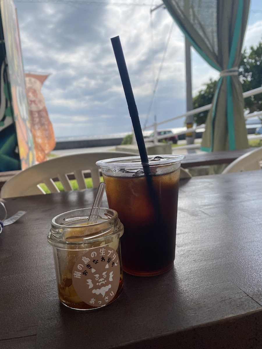 Visitors here often come for a gentle break from the usual café scene, finding a calm place to sit and savor desserts that balance richness with a clean, natural sweetness. The cold brew iced coffee is crisp and refreshing, a fitting companion to the creamy puddings or a nostalgic melon cream soda topped with vanilla ice cream—ideal for cooling off on Okinawa’s warmer days.